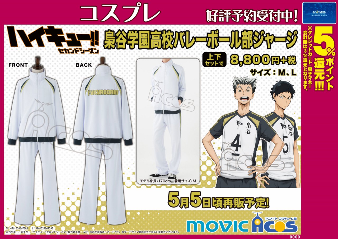 アニメイト仙台 Acos ハイキュー より 梟谷学園高校バレーボール部ジャージ が5 5に再販予定みやー こ こどもの日 ハイキュー ジャージは当店の衣装部門で一番人気の商品みや ぜひともゲットして頂きたいみやー ご予約お待ちしております